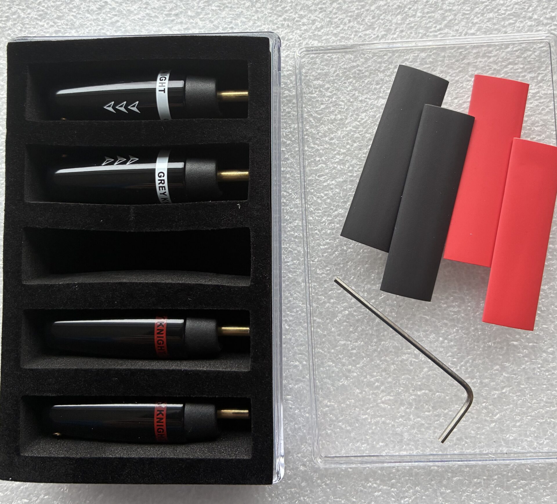 Levereras i en snygg och praktisk presentförpackning, där det ingår sexkantsnyckel samt fyra bitar krympslang (2 röda och 2 svarta)